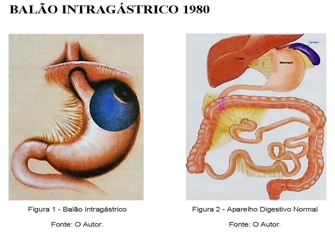O balão intragástrico (desenho da esquerda) é uma prótese esférica de